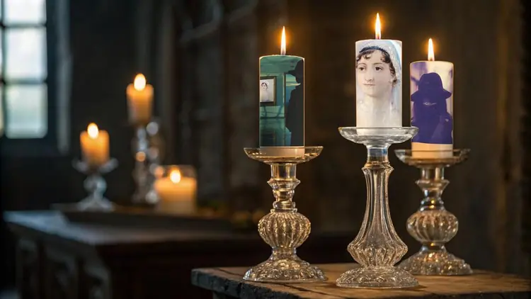 Nordic Vintage Style Candle Featuring Portraits of Jane Austen and Astrid Aillume Designed by Aillume